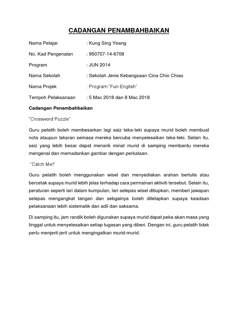 Cadangan Penambahbaikan In English - Cadangan Penambahbaikan - English forms 1, 2, 3 :