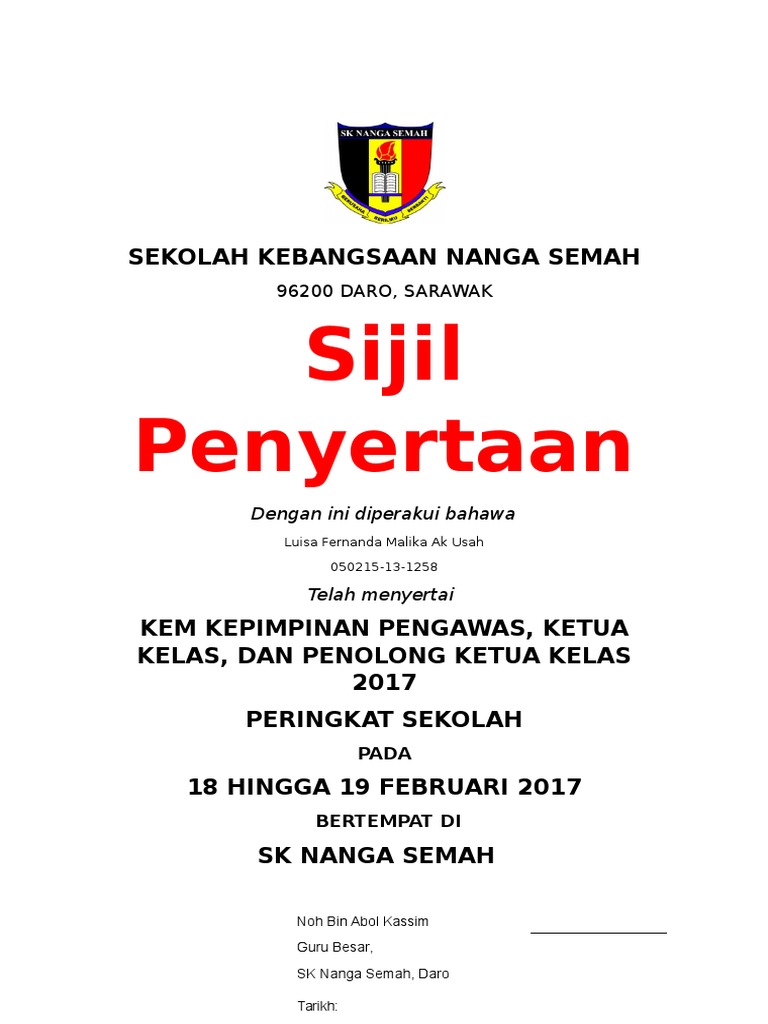 Sijil ini dijamin oleh freddie mac dan dikenakan cukai oleh kerajaan persekutuan, kerajaan dan tempatan. Clik di sini untuk lihat contoh sijil penyertaan. Skill ataupun pengetahuan untuk pihak tertentu menyediakan banyak sijil dalam. Text of contoh sijil penghargaan. Sekolah menengah kementerian pelajaran jalan menara 123456 kuala lumpur.